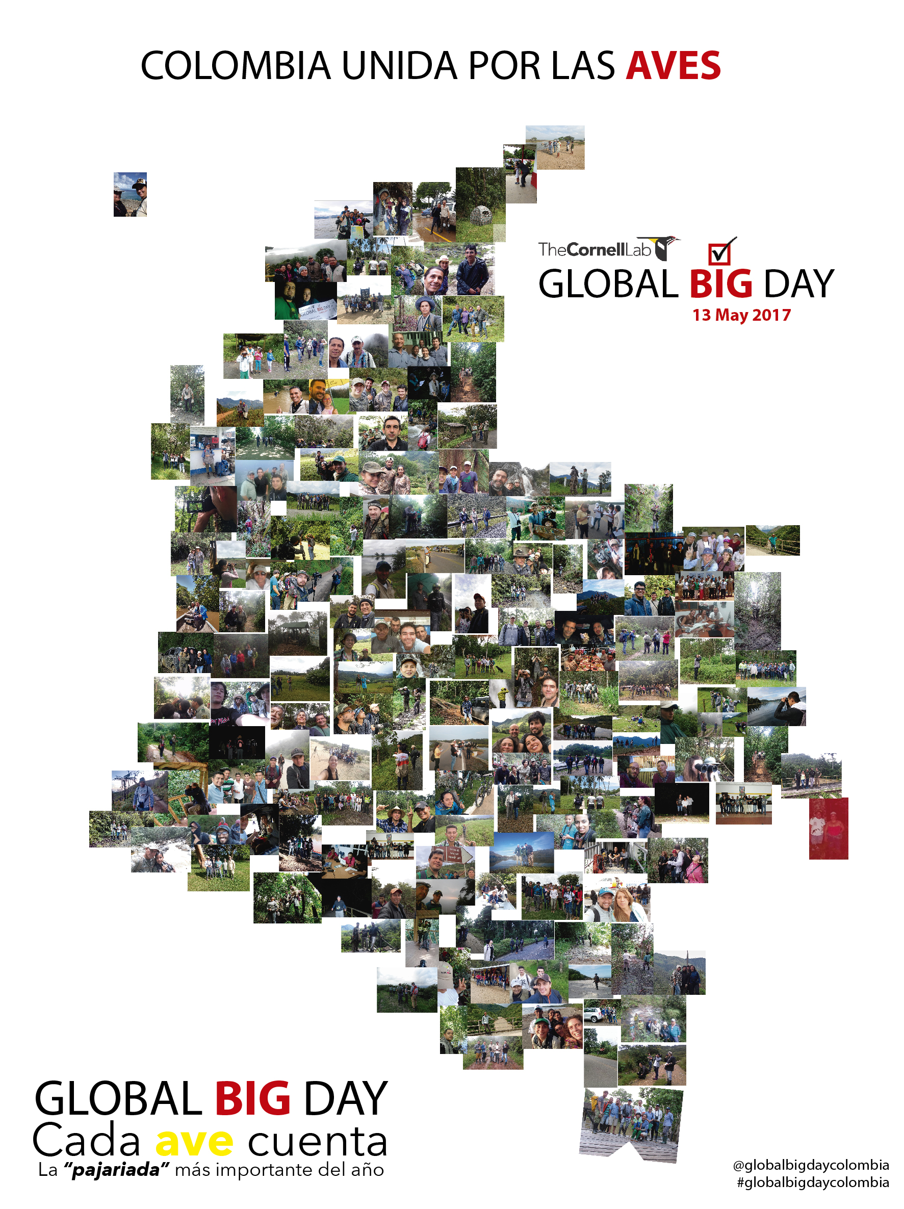 Esa noche, como una forma de celebrar ese logro colectivo, creé un afiche con un mapa de Colombia construido a partir de 177 fotografías de pajareros en campo. Esa imagen se convirtió en el símbolo de un país que había aprendido a volar unido.