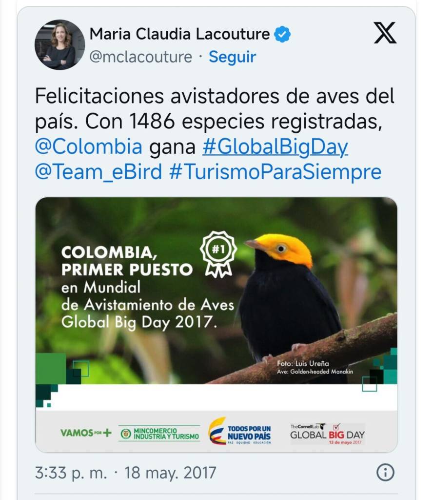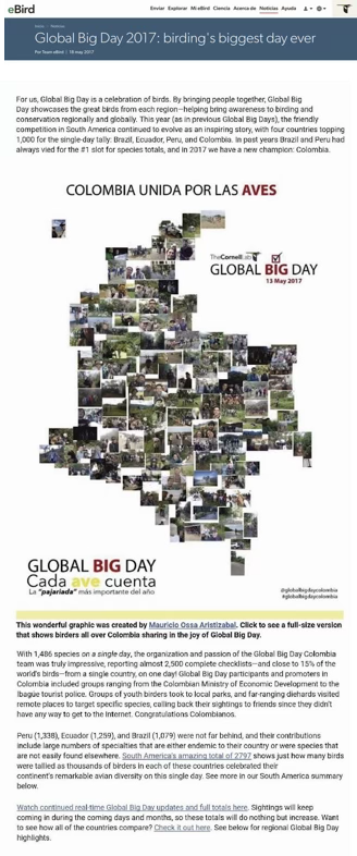 En la publicación oficial de resultados por parte de eBird, Colombia fue presentada como el nuevo referente, destacando su crecimiento y su capacidad de articulación.