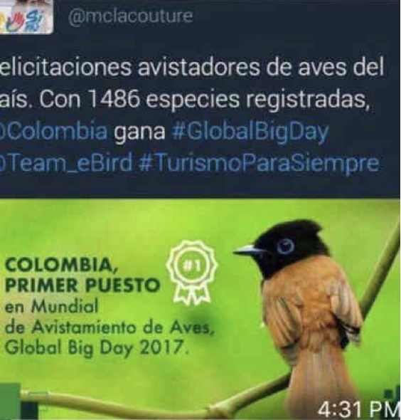 El 13 de mayo de 2017, Colombia vivió una verdadera fiesta pajarera.