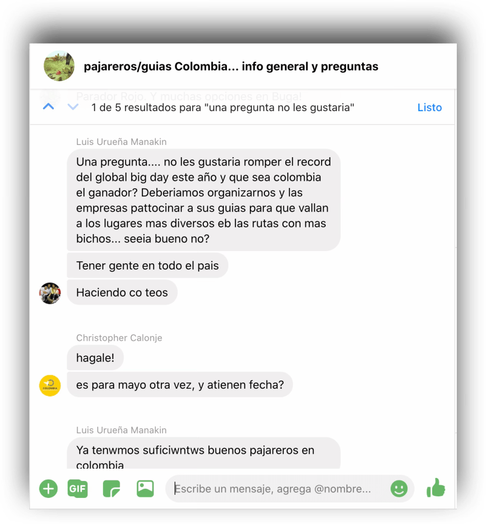En enero de 2017, en un chat de empresas de aviturismo, Luis Urueña lanzó una pregunta que cambiaría la historia: